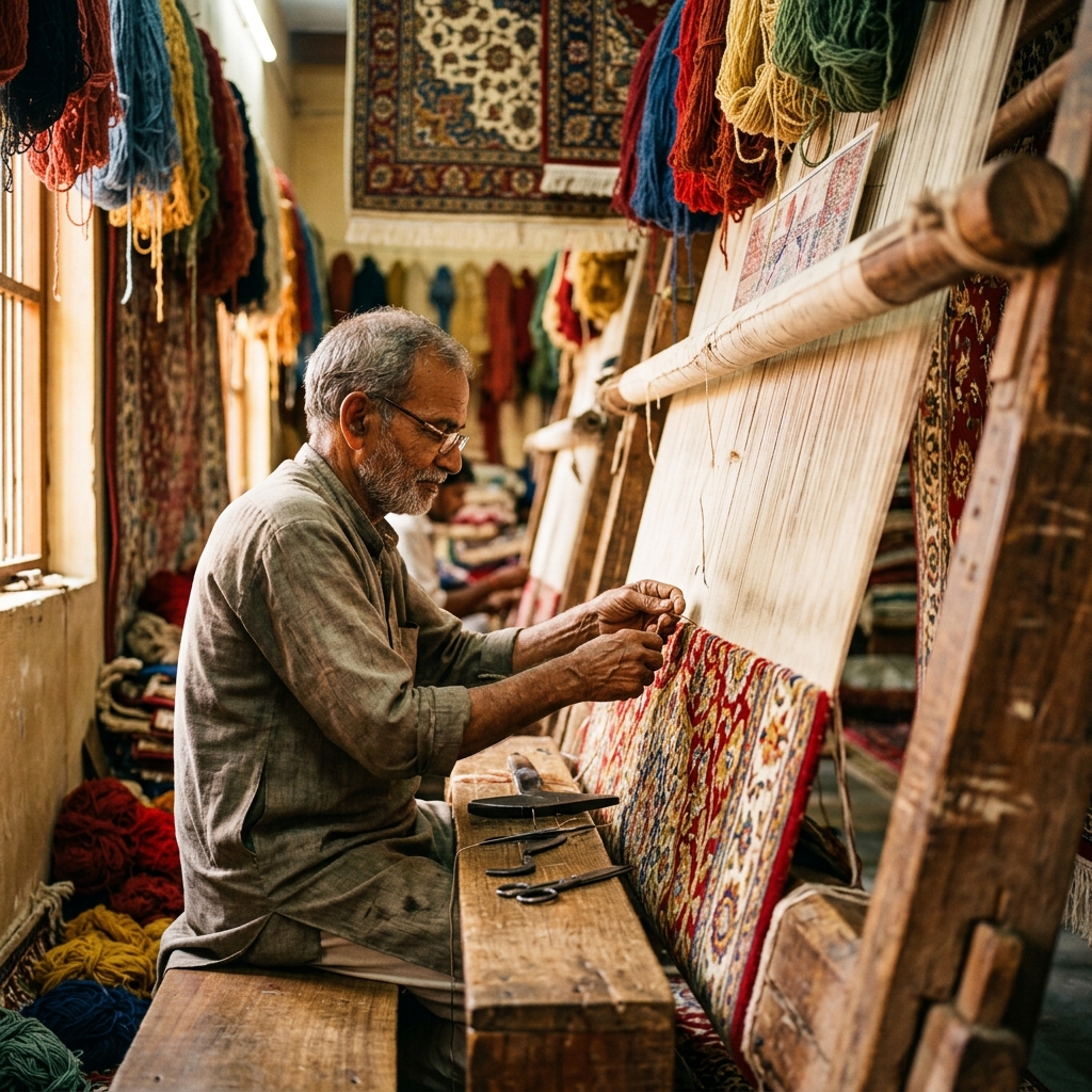 Master artisans weave each carpet knot by knot on traditional looms — a process that can take months.
